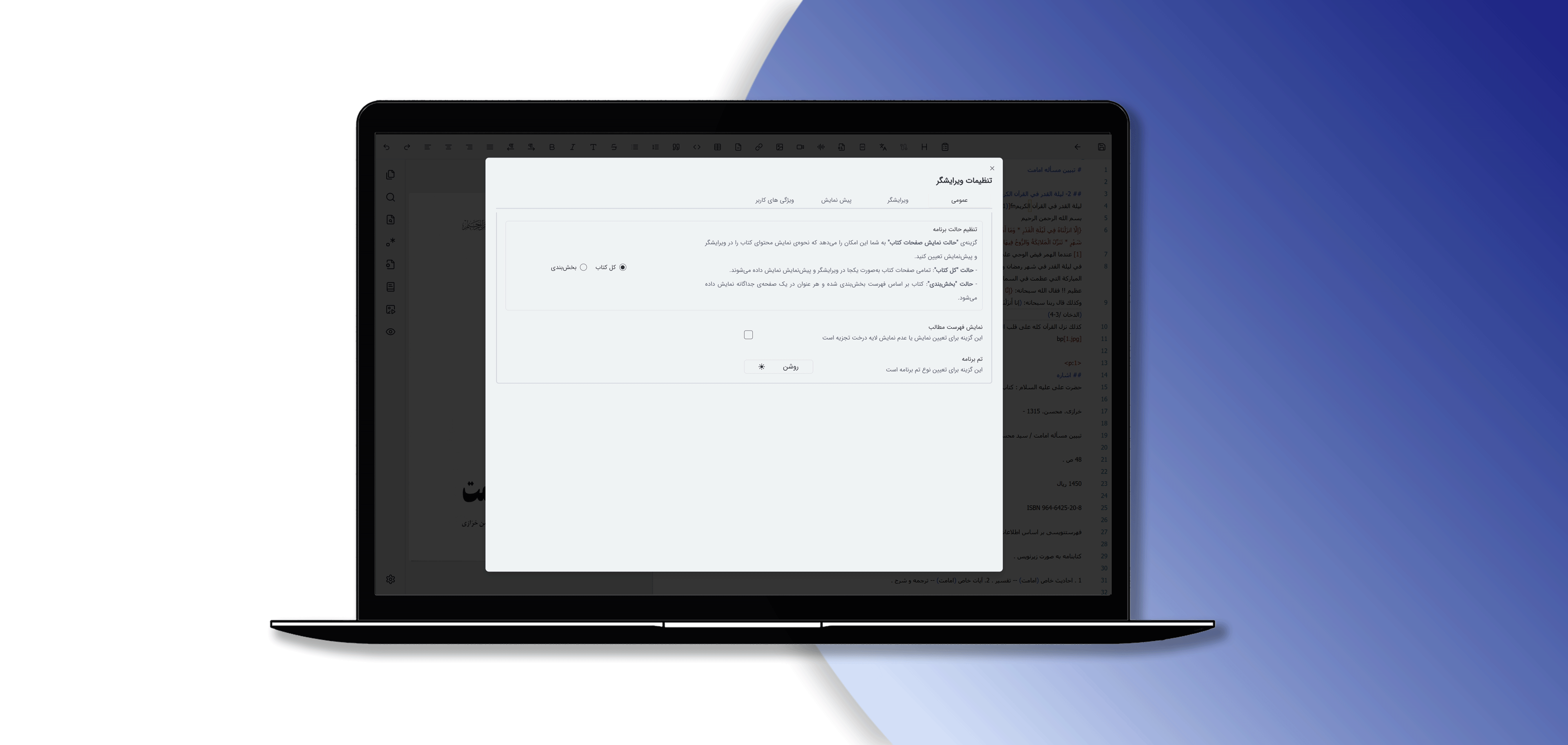 ادمین یا مدیر کتابخانه با استفاده از ویرایشگر پیشرفتهی کتاب، میتواند محتوای کتابها را ویرایش و بهروزرسانی کند.